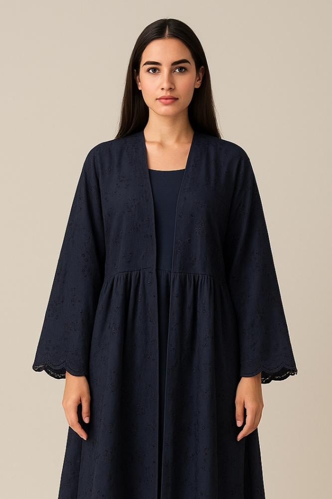 مصنوعة من قماش القطن البارد المطرز بخيوط تتناسب مع خامتها القطنية . بتصميم جدا بسيط ومميز في تفاصيله ، مما يخلق قطعة فاخرة تتألقين بها .