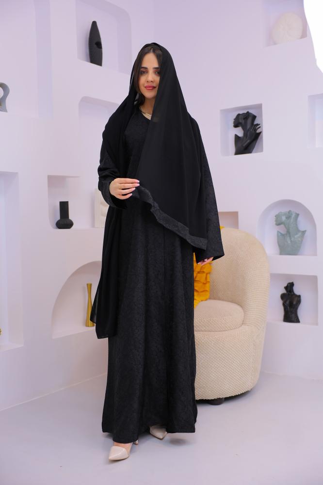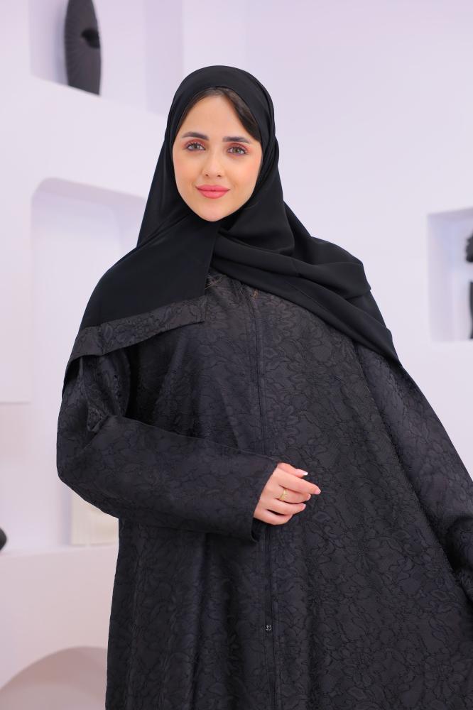 عبابة من قماش الكريب الجاكار الكوري الفاخر الأسود بقصة ناعمة عادية وأكمام ضيقة